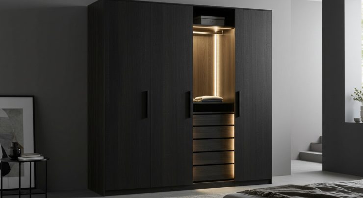 Подумай о будущем. Установка шкафа на высокие ножки (10-15 см) не только сделает его визуально легче, но и позволит роботу-пылесосу без проблем убирать под ним. А внутри можно добавить современные решения: выдвижные корзины, штангу для одежды на удобной высоте или даже встроить розетку для зарядки гаджетов.